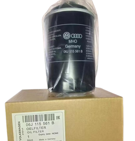 Volkswagen Group Genuine Oil Filter with part number 06J 115 561 B is an oil filter designed for various Audi and Volkswagen vehicles, including models with 2L engines like the VW Beetle, Jetta, Passat, Tiguan, and Audi A3, A4, A6, Q5, TT. It has a thick steel can, metal end caps, paper filter material and a silicone anti-drain back balve for optimal engine protection and longevity.